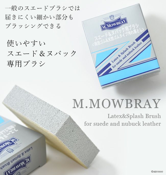 ムートンブーツやスエード靴のちょっとした汚れ落としに、M.MOWBRAY(M.モウブレイ)のラテックス&スプラッシュブラシを 消しゴムのように簡単にレザーの汚れが落とせる使いやすいケアブラシ/