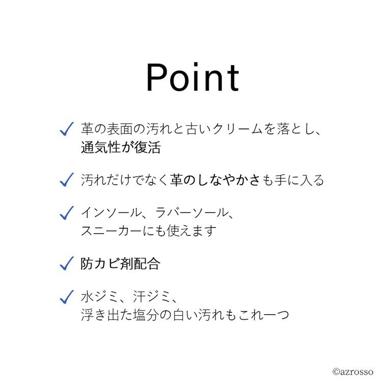皮革の表面についた汚れを落としきれいにし、通気性をよくします。