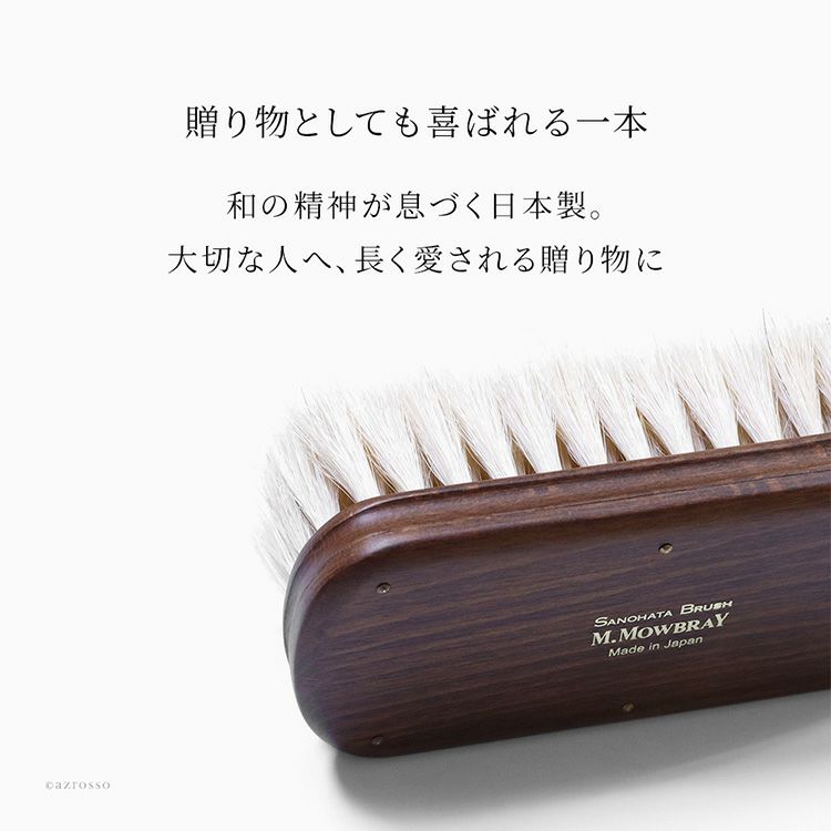 デリケートな皮革やコードバンのホコリや汚れ落としに適した日本製白馬毛ブラシ。艶出し・仕上げのフィニッシングブラシとして、革靴のシューケアにもぴったり。プレゼントにもおすすめの高級ケアブラシ 日本製 靴ブラシ 白馬毛 コードバン用 ホコリ落とし 汚れ落とし 靴磨き シューケア お手入れ ケア用品 コンパクト M. MOWBRAY モゥブレイ