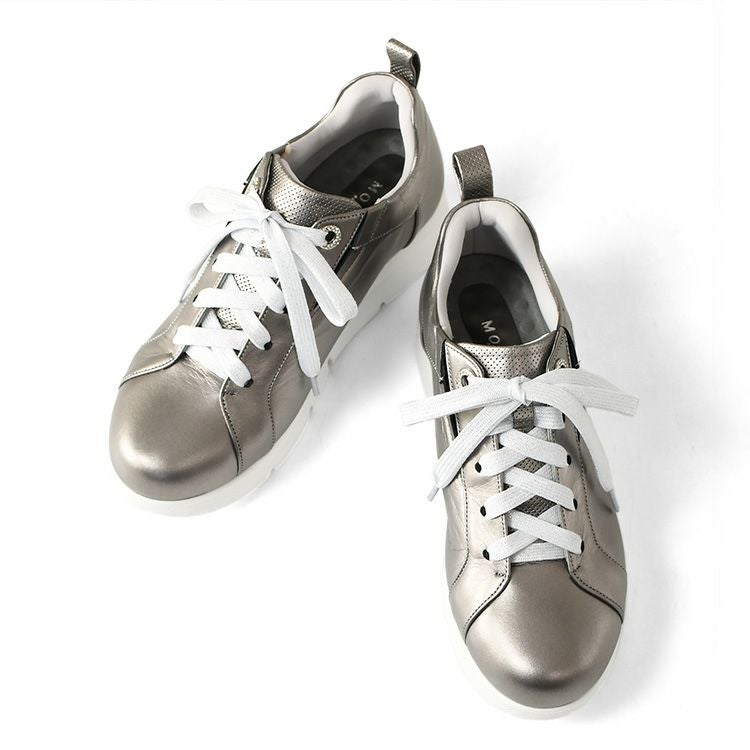 日本製 スニーカー レディース 幅広 4E 軽量 厚底 おしゃれ きれいめ シルバー Monet モネ 243403 甲高 外反母趾