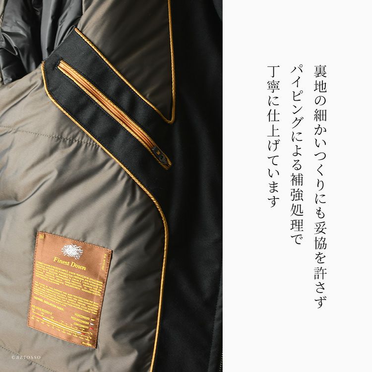シベリア製の驚くほど軽く柔らかい羽根毛を使用したダウン 95%・フェザー 5%という世界で最も純度の高いダウン素材で作られ、パーツさえもブランドの特注品のみを使用。