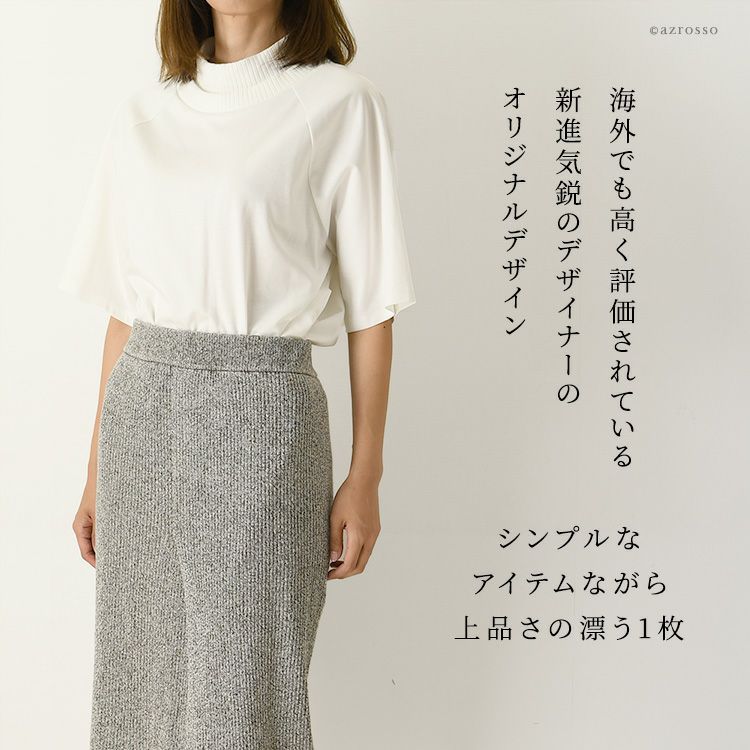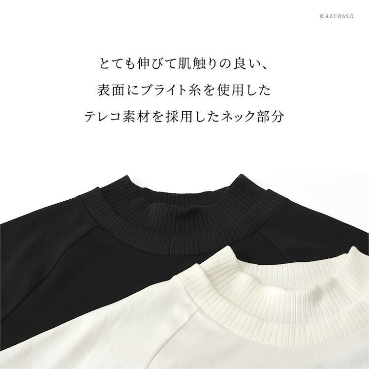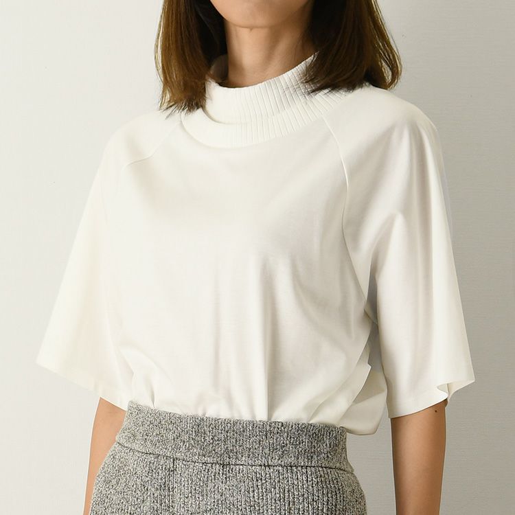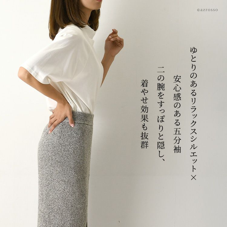 五分袖 tシャツ モックネック オーバーシルエット 綿 トップス ハイネック カットソー 春 夏 きれいめ 白 黒 ホワイト ブラック