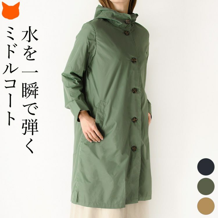 超撥水 レインコート 蒸れない レインウェア ミドルコート 軽量 軽い 撥水 コート 雨具 おしゃれ ポンチョ 合羽 ブランド ネイビー カーキ グリーン 紺 緑 フード付き ポーチ付き レディース