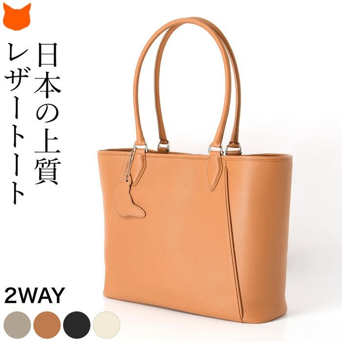 日本製 レザー トートバッグ 2way a4収納 ビジネスバッグ 通勤 本革 トープ キャメル 黒 ブラック アイボリー バッグインバッグ付き 底鋲付き
