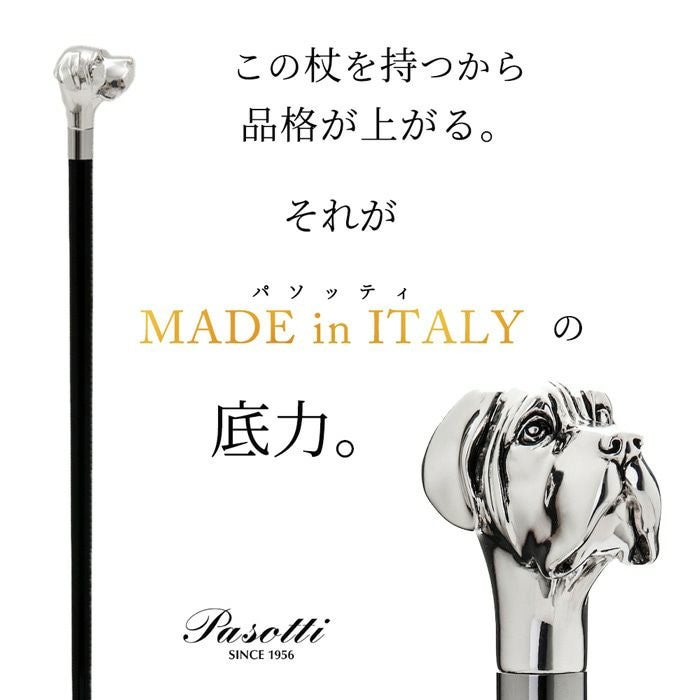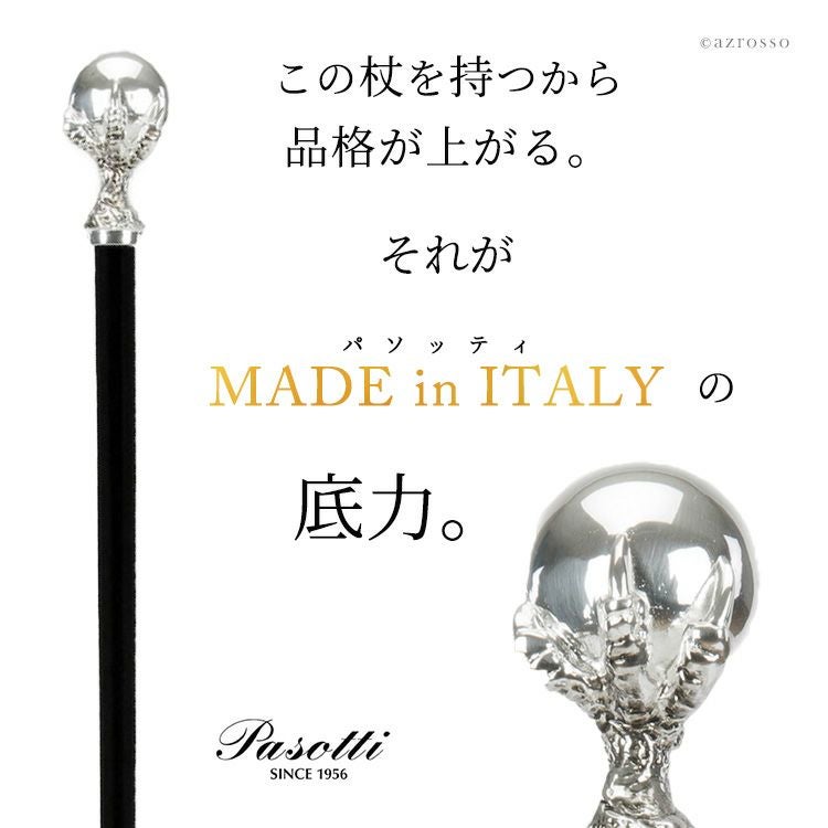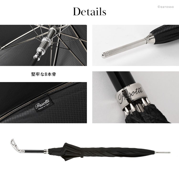 パソッティは、イタリアで1956年に創業した、老舗の傘ブランドです。創業者のErnesta Pasotti(エルネスタ・パソッティ)は、ミラノの傘工場で何年も働いた後、最高級のイタリアの生地、木材、真ちゅうを組み合わせた職人の方法のみを使用して傘を製造することに挑戦しました。以降、何世代にも渡り、絶妙でゴージャスな見た目の傘を作り続けてきました。現在は、雨傘のみならず、ステッキ、靴べら、日傘などジャンルを増やし多くのモデルを展開。職人の手により完全に手作りされたパソッティのアイテムは世界中の高級店で販売、愛されています。