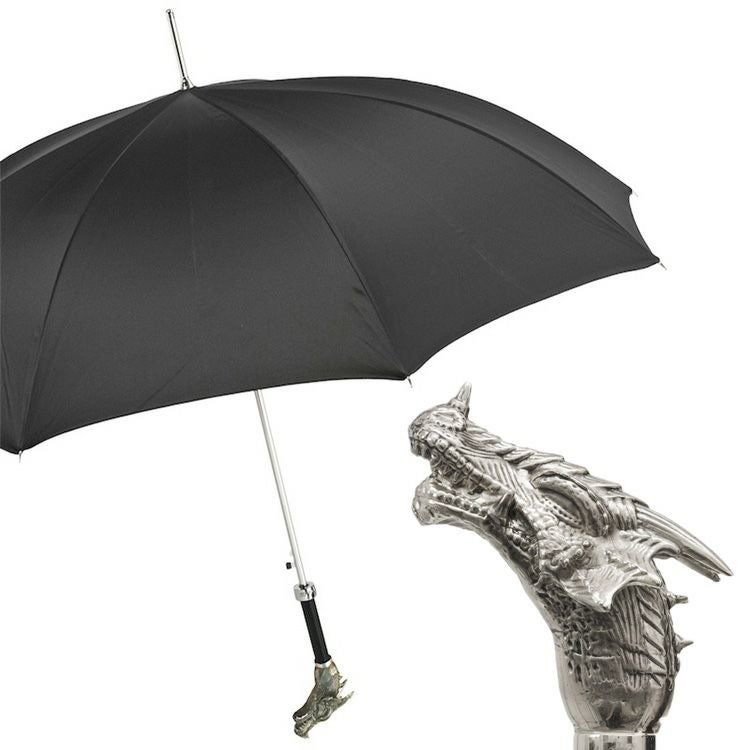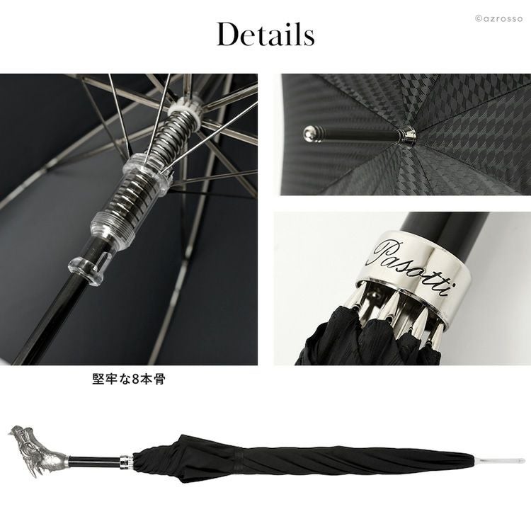 シルバードラゴン 長傘 黒 雨傘 龍 おしゃれでかっこいいイタリアのジャンプ式傘 8本骨 プレゼントやギフトにおすすめ pasotti
