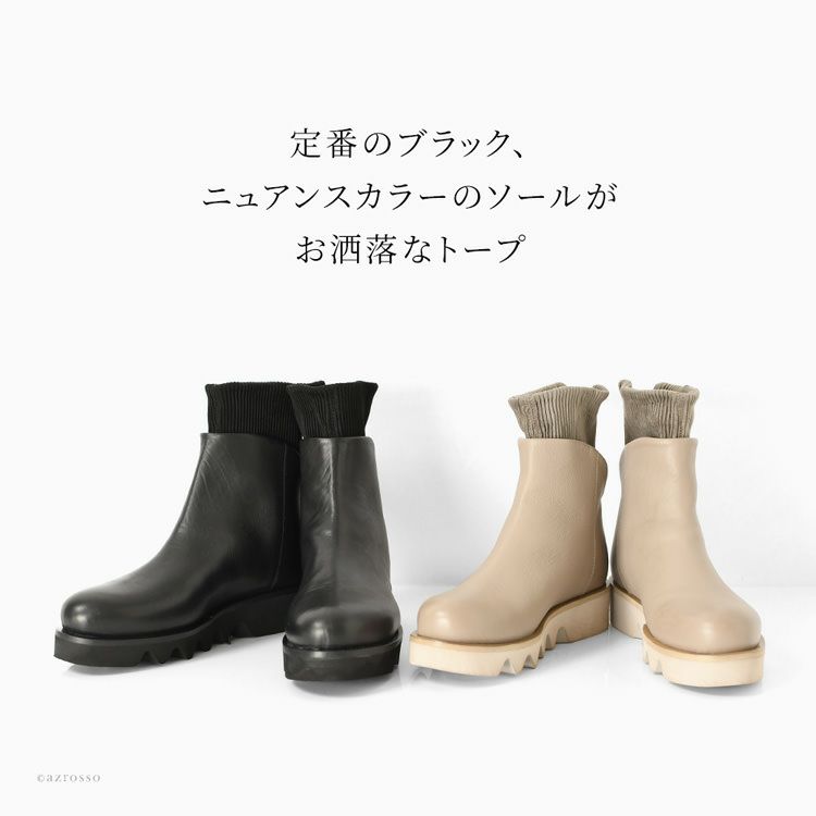▼特徴:ソックスブーツ|ショートブーツ|厚底|ローヒール|ラウンドトゥ|軽い|軽量|コンフォート級|歩きやすい|痛くない|本革|バックジップ|バックファスナー|イタリア製|ソックス ブーツ|ショート ブーツ|細身
