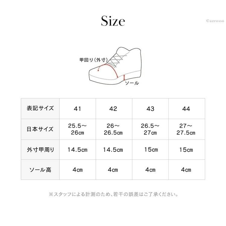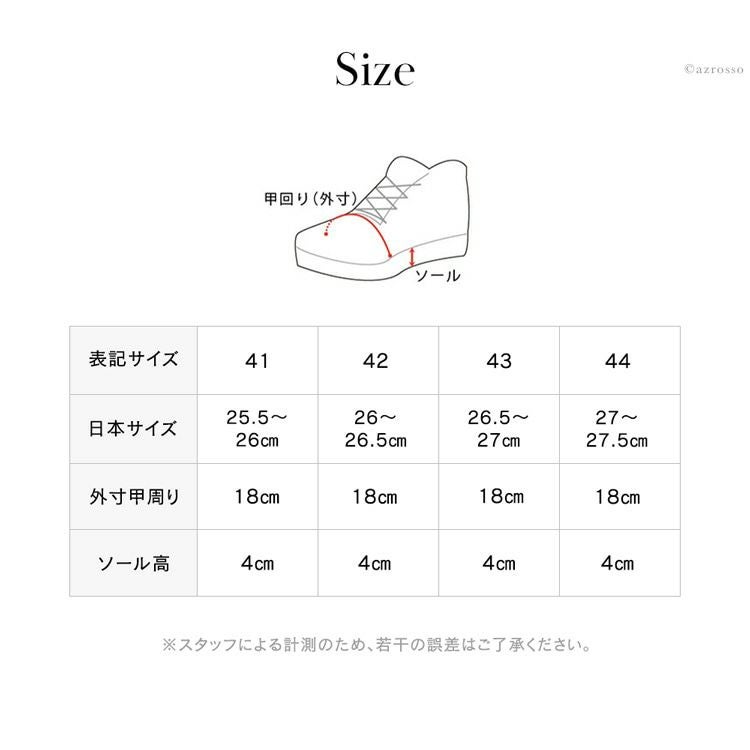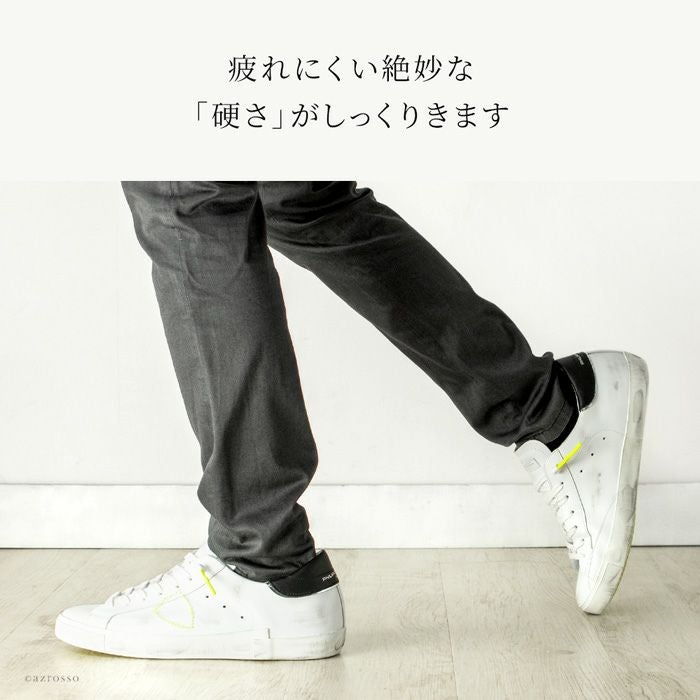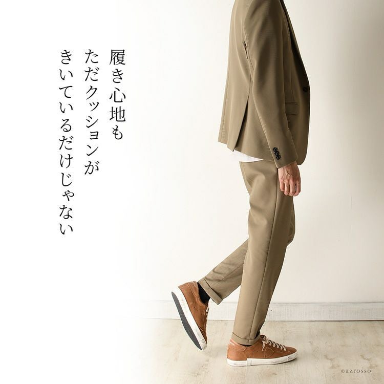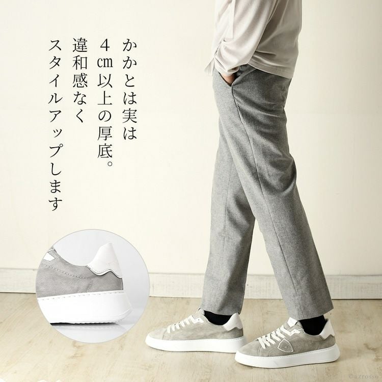 靴底がけっこう厚く3cm程度あり、中敷も1.5cm程度あるので4-5cmは背が高くなります。背が高くなるのも日本男子には嬉しいですが、長時間の散歩も、思いっきり身体を動かしても足の疲れを感じにくいのは、靴底が厚く、中敷もしっかりしているからかもしれません。