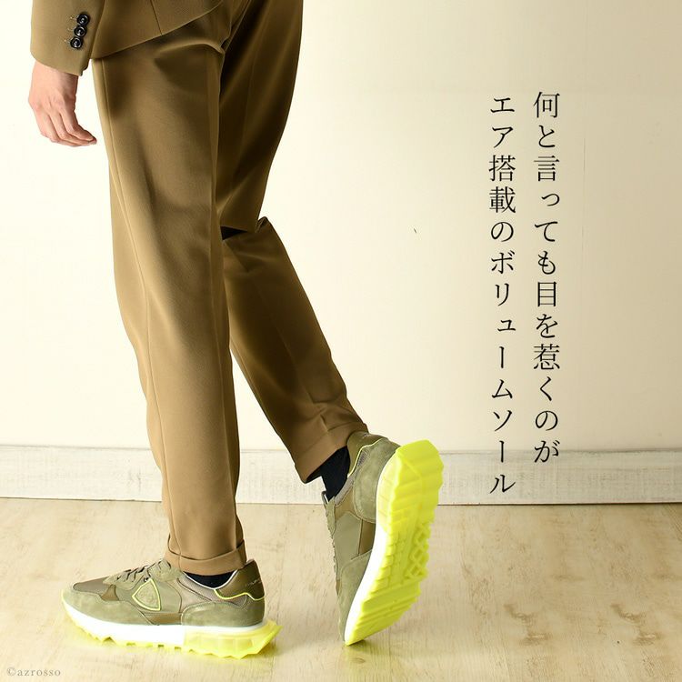 定番のスポーツブランドのスニーカーだと、どうしてもシンプルなコーデにはごく普通な雰囲気になってしまいますが、フィリップモデルは靴の存在感がすごいので、普通のシャツとデニムがこなれ感を出せてしまいます。
