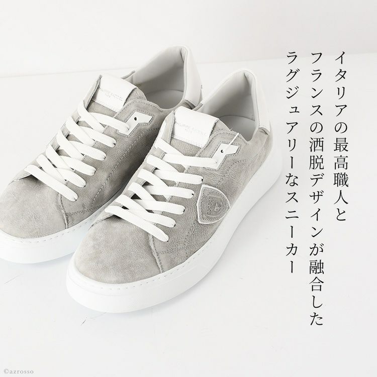 フィリップモデル レザー スニーカー 厚底 ローカット PHILIPPE MODEL Temple Btlu NB11 テンプル グレー 本革 イタリア製 正規品 25.5cm 26cm 26.5cm 27cm 27.5cm 男性 靴 メンズ