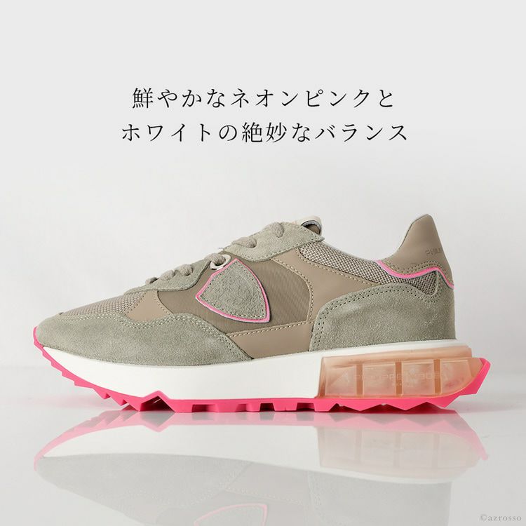 エア搭載のボリュームソールと鮮やかなネオンピンクが目を惹くPHILIPPE MODEL(フィリップモデル)のハイテクスニーカー「La rue Lrld WN06」。デザイン性の高さに加え履き心地も快適なレザースニーカー フィリップモデル レザー スニーカー 厚底 エア ボリュームソール ローカット PHILIPPE MODEL La rue Lrld WN06 ラ ルー ピンク ベージュ 本革 イタリア製 正規品 23cm 23.5cm 24cm 24.5cm 25cm 女性 靴 レディース