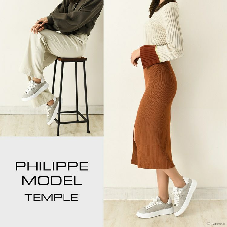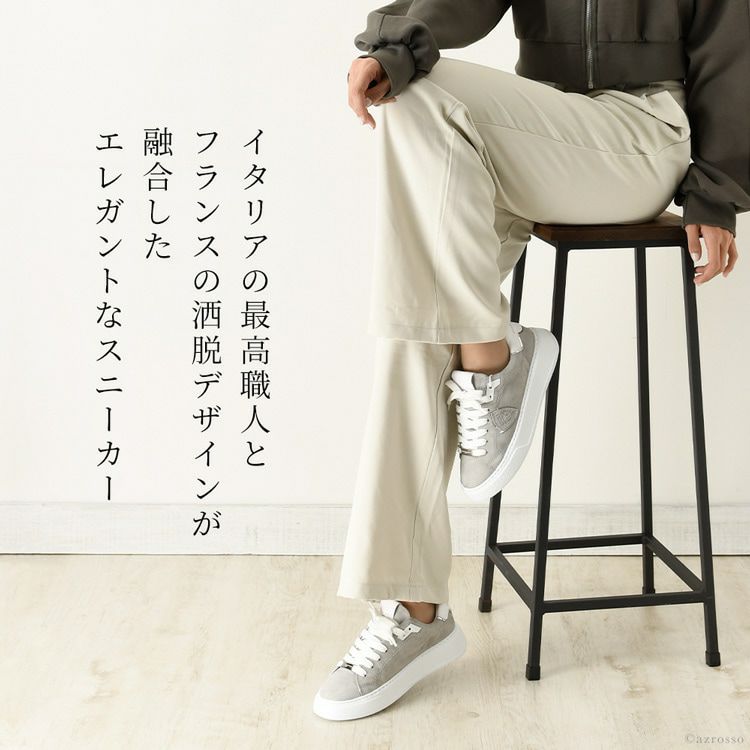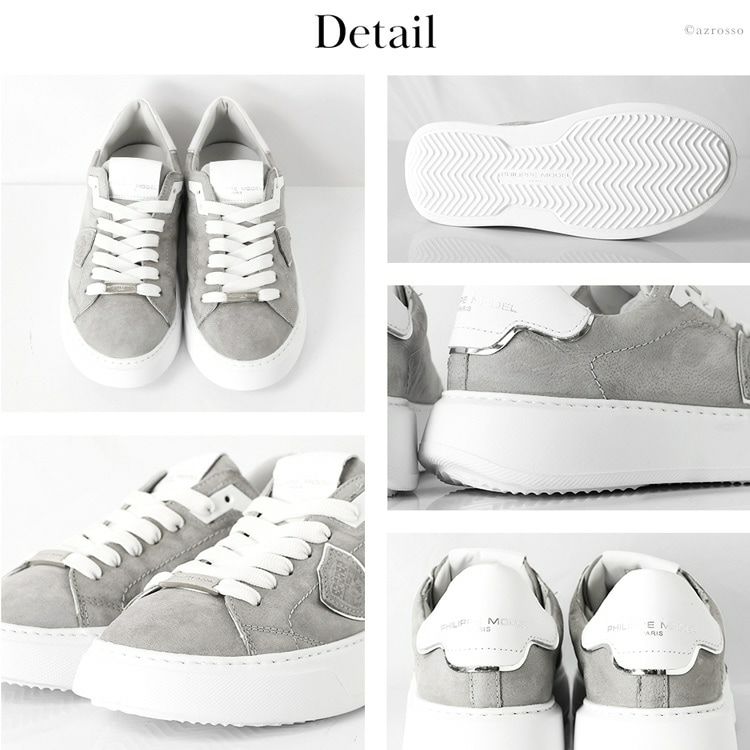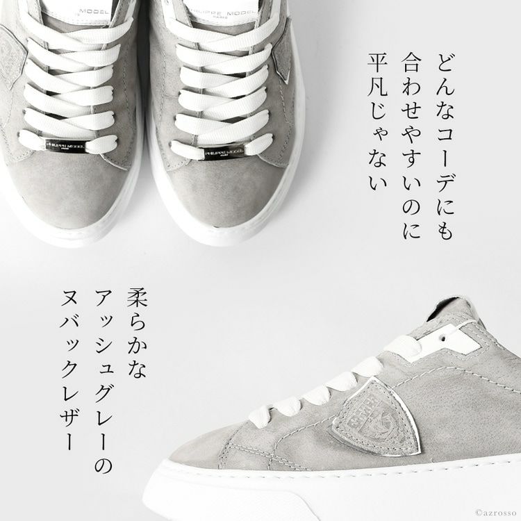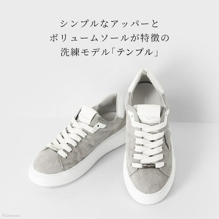 フィリップモデル 本革 スニーカー 厚底 ローカット PHILIPPE MODEL Temple Veau Btld NB13 テンプル アッシュ グレー レザー イタリア製 正規品 23cm 23.5cm 24cm 24.5cm 25cm 女性 靴 シューピアス付き ローカットスニーカー レディース