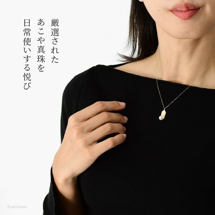 日本製 パール ネックレス 6mm K10 イエロー ゴールド アクセサリー ペンダント シンプル ジュエリー カジュアル バロック真珠 Behind