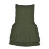 裾はローゲージのリブ編みでしっかりと、おなか部分はハイゲージで編んですっきりと、きれいなシルエットになるよう仕上げています。