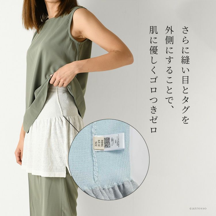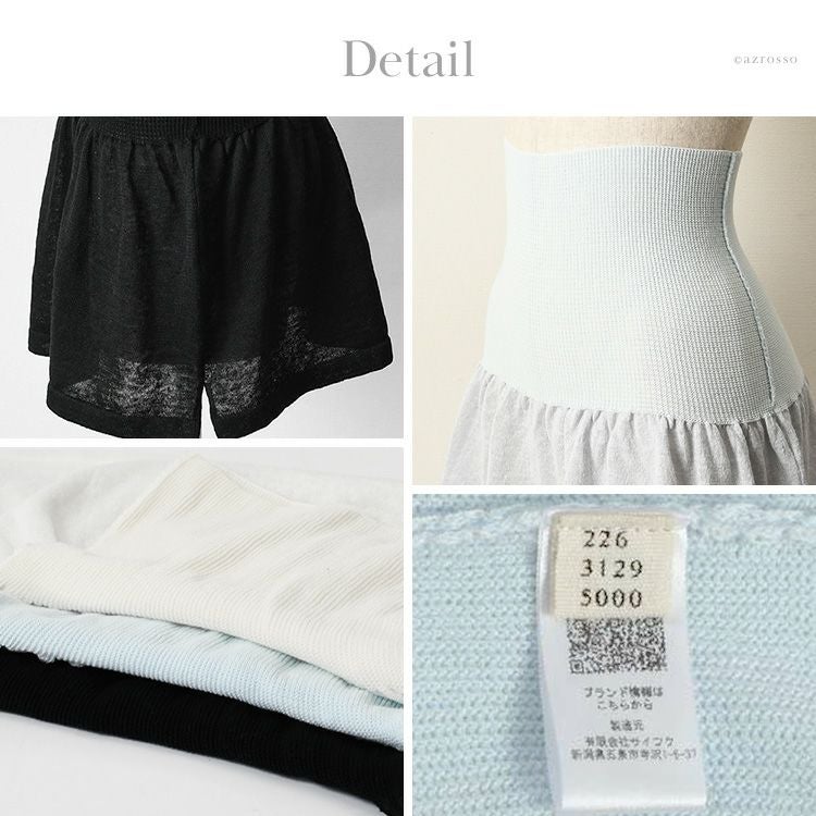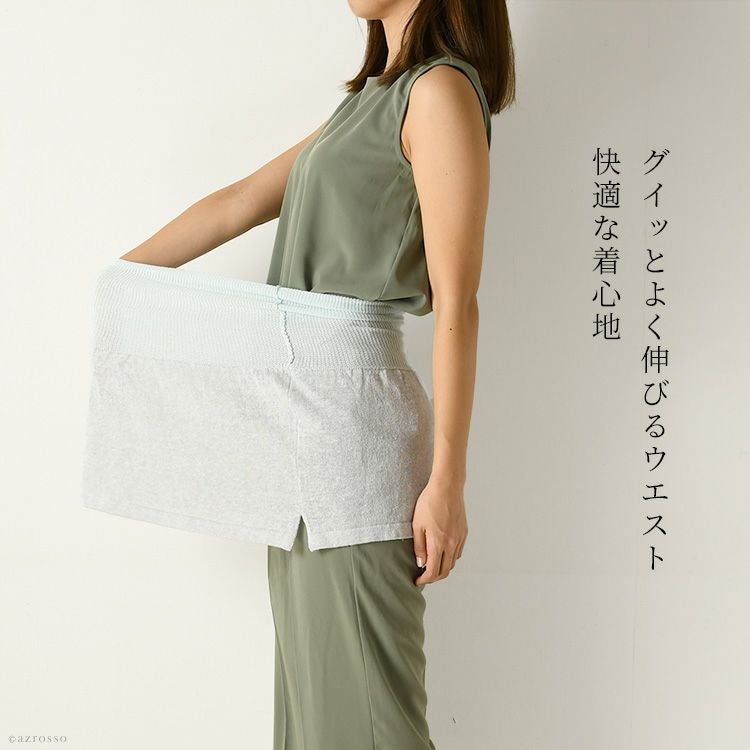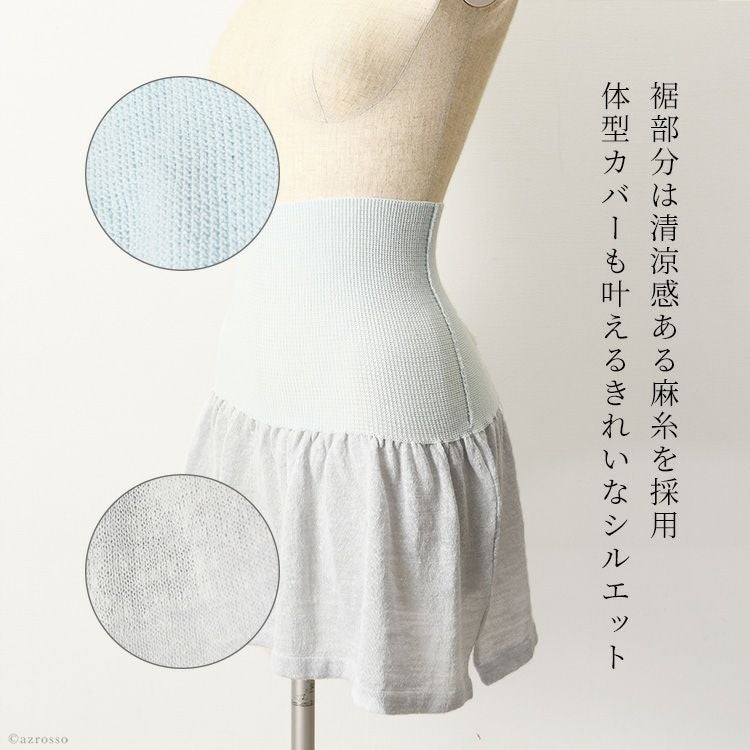 裾部分はさらりと涼し気な麻(リネン)糸を使用したニット生地。 すっきり薄着でも着ぶくれせずに重ね着コーディネートを楽しめます。 気になるウエストから腰、おしりまわりをサポートし、さりげなく体型カバーを叶えます。