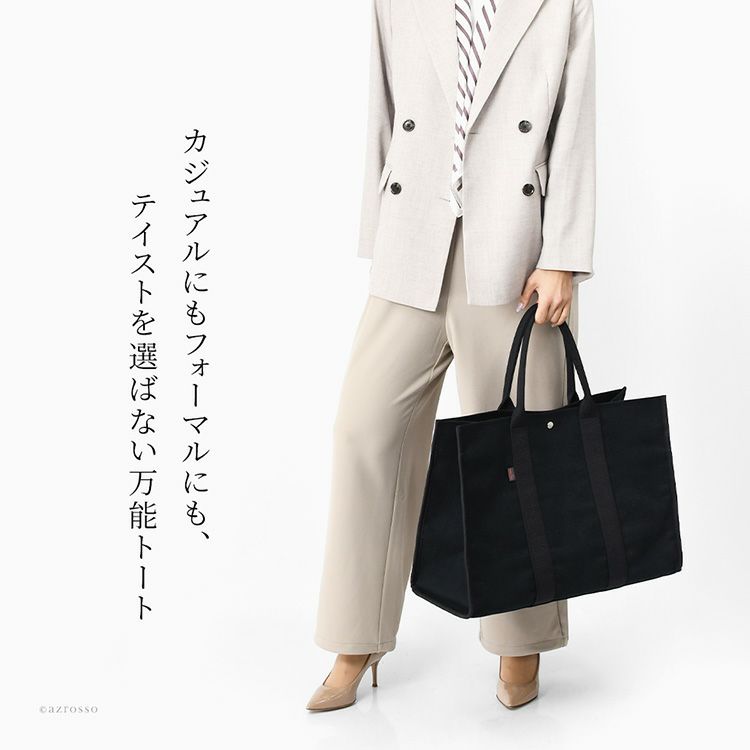 日本製 sasicco スクエア トートバッグ A3 A4 大容量 自立 シンプル 通勤 ポケット 底鋲 付き 高級 キャンバス 肩掛け 帆布 刺し子 バッグ 綿 100%