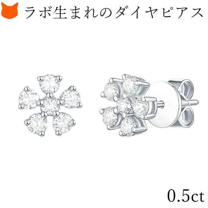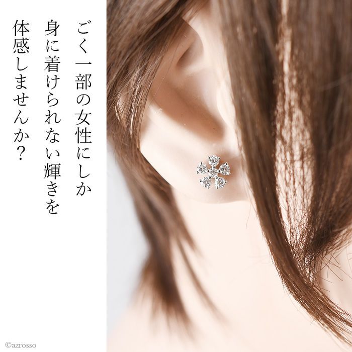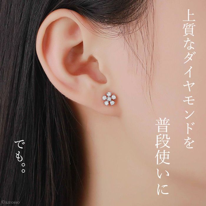 ▼特徴:フラワーモチーフ|スタッドピアス|ポスト|花|両耳|華奢|シンプル|ダイヤモンド|宝石|レディース