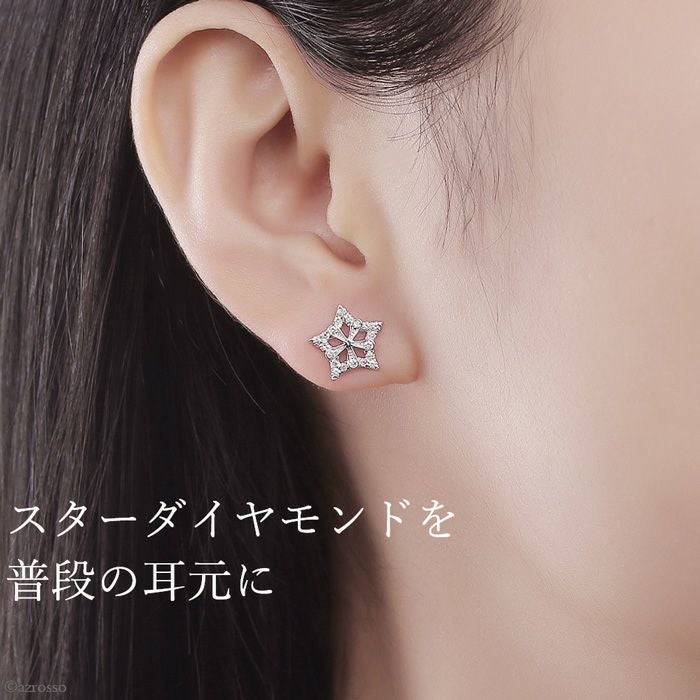 ▼特徴:スターモチーフ|スタッドピアス|ポスト|星|両耳|華奢|シンプル|ダイヤモンド|宝石|レディース