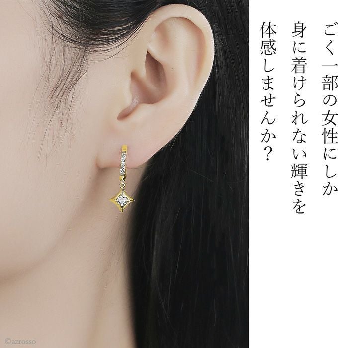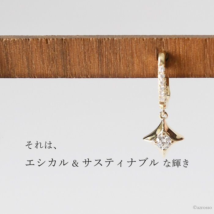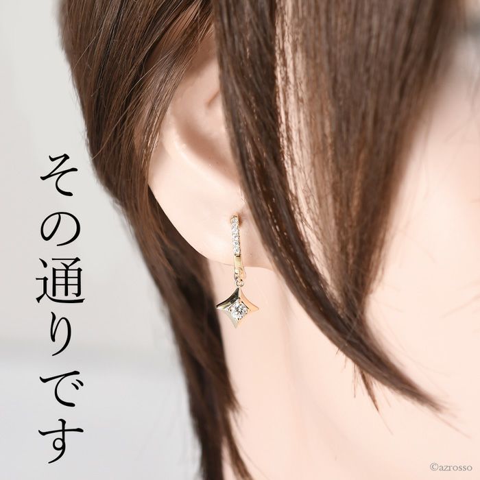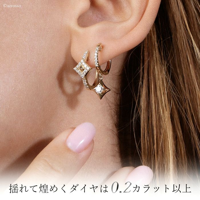 ▼特徴:フープピアス|フープ型|ひし形|菱形モチーフ|ゆらゆら|揺れる|両耳|華奢|シンプル|ダイヤモンド|宝石|レディース