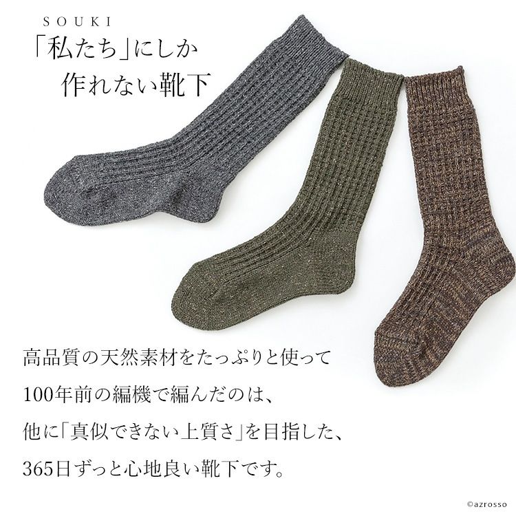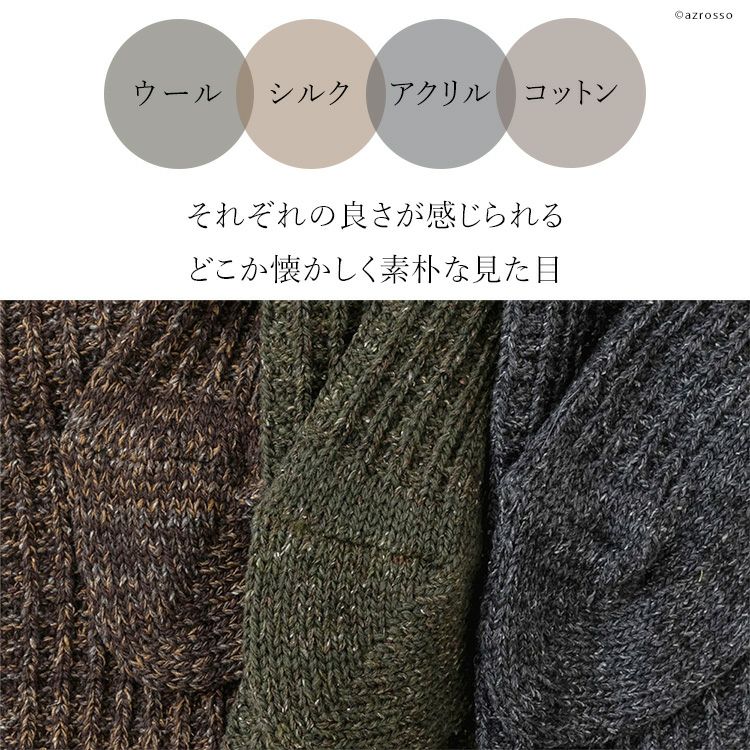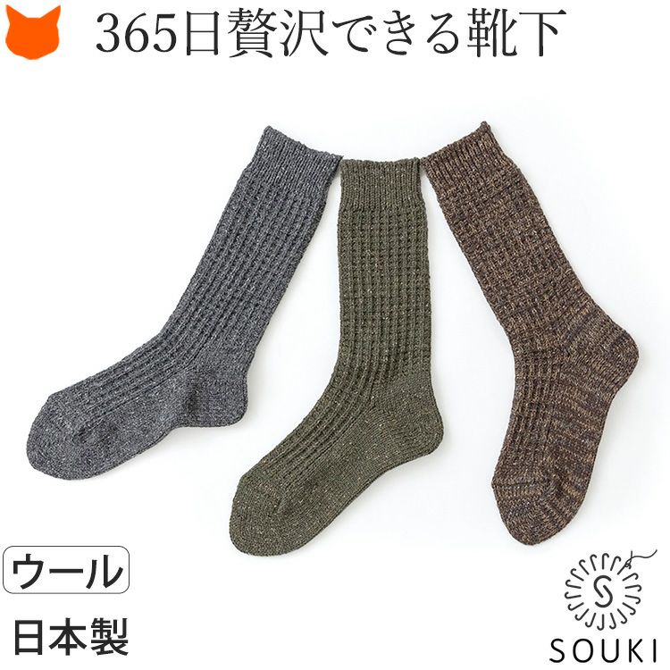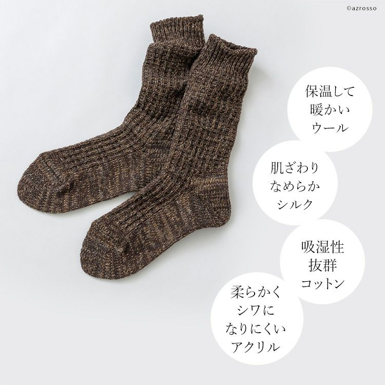 靴下 レディース おしゃれ ウール ソックス シルク 日本製 グレー 灰色 チャコール ブラウン 茶 インディゴ 紺 カーキ 深緑 クルーソックス 22cm 23cm 24cm 27cm 無地 ブランド 綿【通常ネコポス配送】