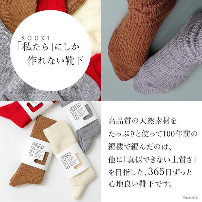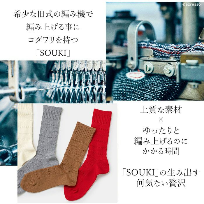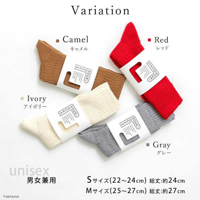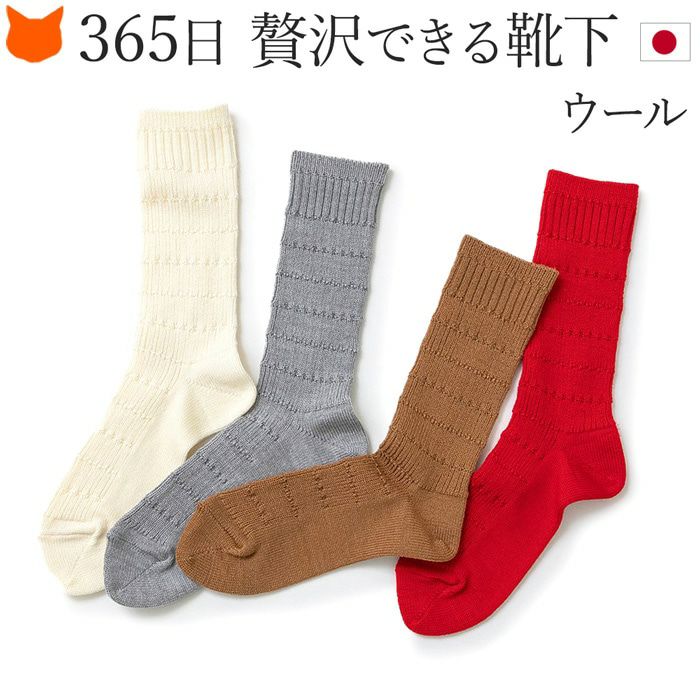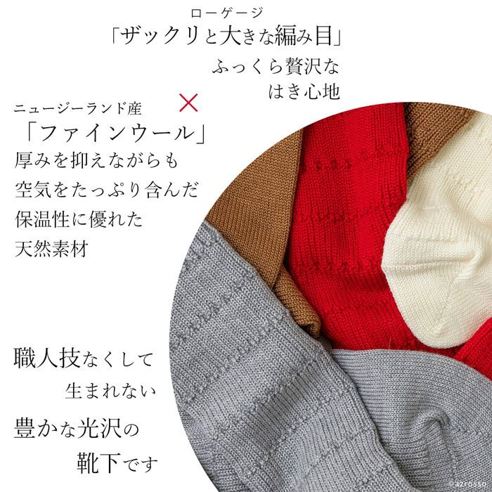ウール 靴下 ローゲージ クルーソックス 日本製 ブランド アイボリー グレー キャメル レッド 男女兼用 レディース メンズ【通常ネコポス配送】