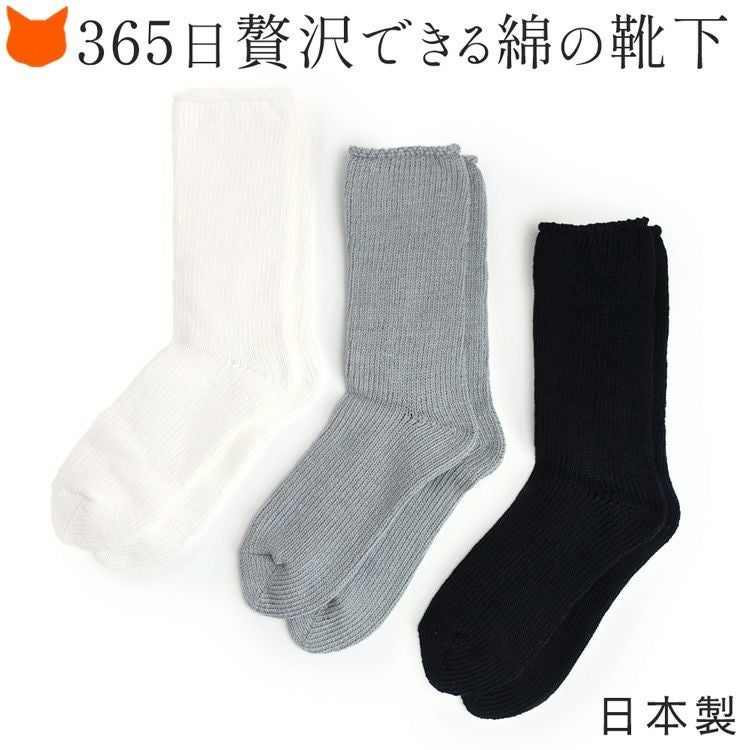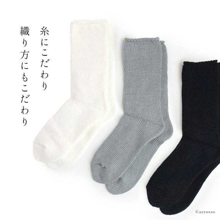 靴下 レディース クルー丈 おしゃれ クルーソックス コットン ソックス 綿 くつ下 白 ホワイト グレー 黒 ブラック 22cm 23cm 24cm 25cm 26cm 27cm 日本製 男女兼用 ローゲージソックス 無地 アスペロコットン【通常ネコポス配送】