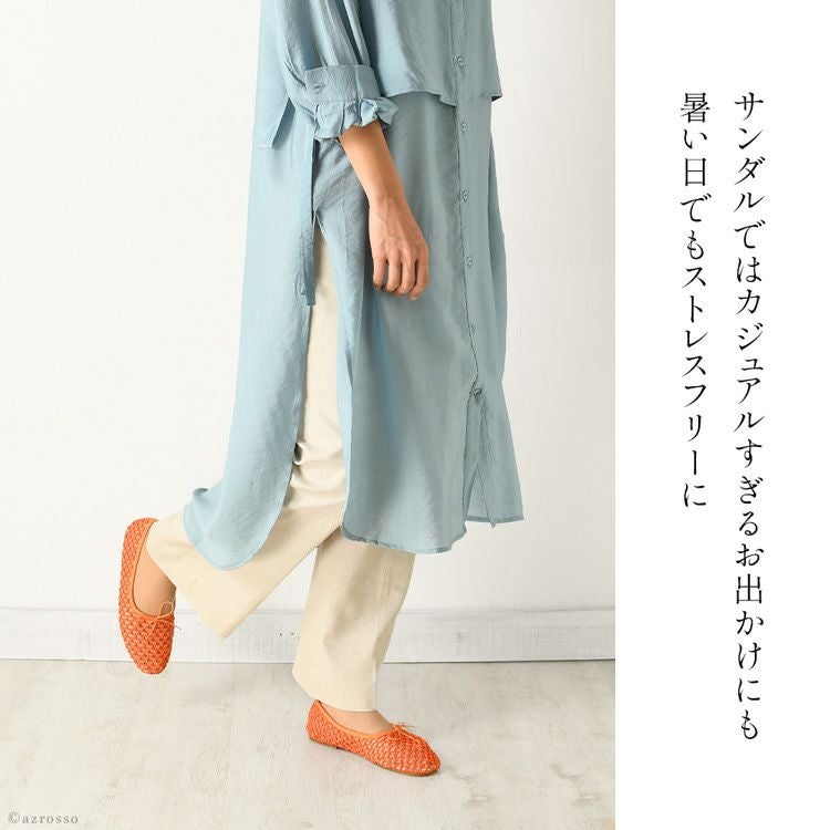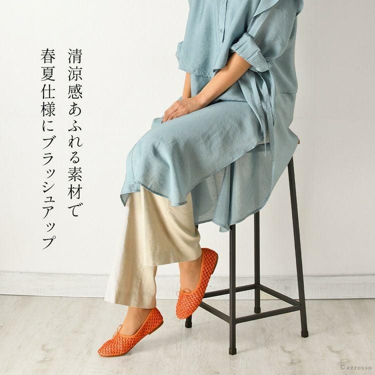 ▼特徴:ゆったり ラウンドトゥ フラットパンプス 涼しい 通気性 ラフィア風 クロシェ編み 編み込み 清涼 マニッシュシューズ セカンドシューズ 機内履き マタニティ