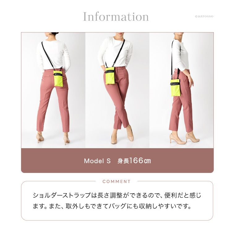 コメント:ショルダーストラップは長さ調整ができるので、便利だと感じます。また、取外しもできてバッグにも収納しやすいです。