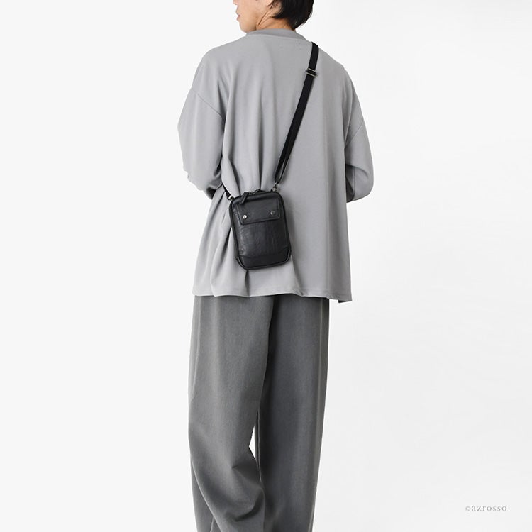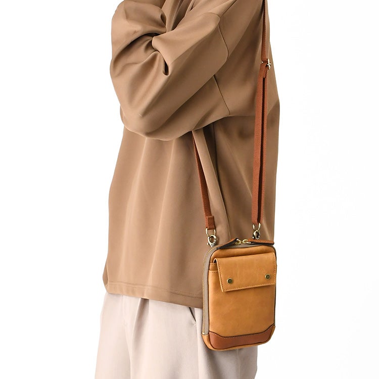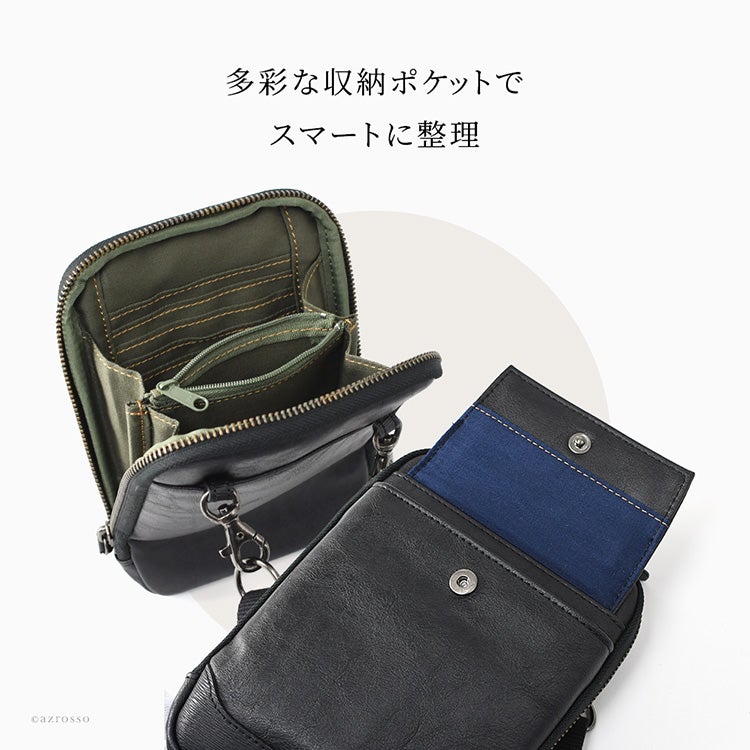 ▼特徴:アンティーク調 ムラ感 ソファ生地 耐久性 お手入れ簡単 アルコール消毒対応 抗菌 クレンゼ 衛生的 スマホポーチ スマホショルダー ウエストポーチ サコッシュ スマート 整理整頓 カード収納 職人 老舗 上品 高級感