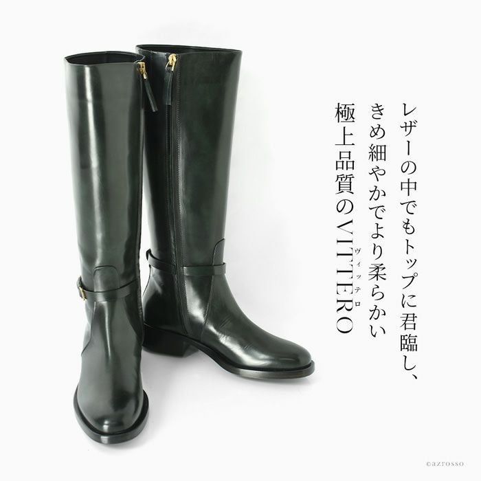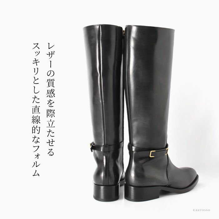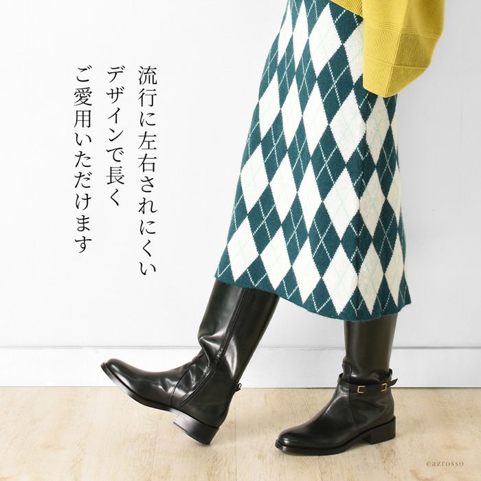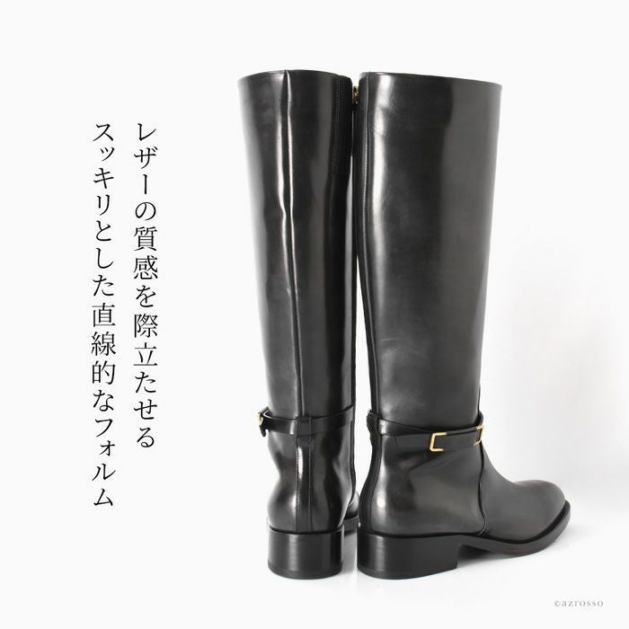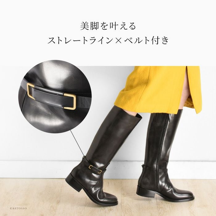 ▼特徴:ロングブーツ|ジョッキーブーツ|ロング丈|ベルト付き|ストレート|本革|ラウンドトゥ|チャンキーヒール|太ヒール|ローヒール|歩きやすい