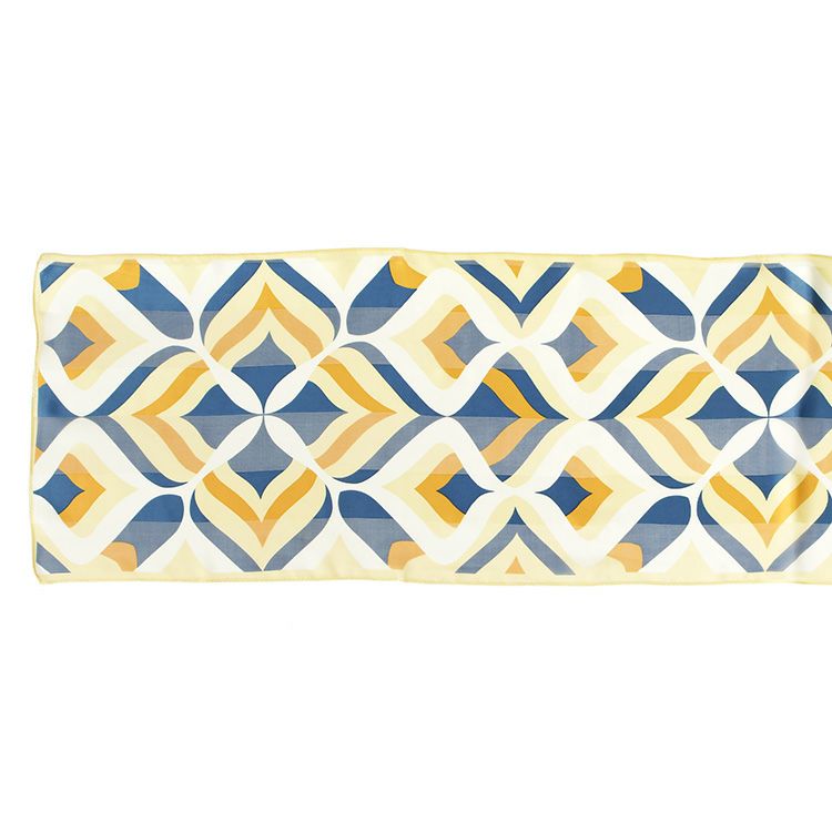 世界に誇る横浜スカーフブランドKINU flawless(キヌ フローレス)の幾何学模様柄シルクスカーフ「クローバーアート」。誕生日 敬老の日ギフトにもおすすめの長方形スカーフ クローバーアート シルク サテン ストライプ 幾何学模様柄 シルク100% 30cm×130cm 日本製 横浜スカーフ【通常ネコポス配送】