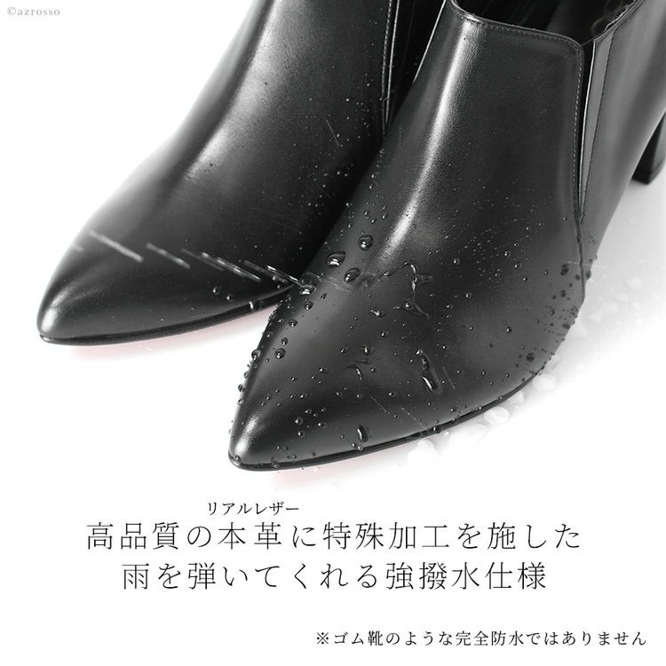 リアルレザーなのに雨でも履ける日本ブランドLIMIT TILL 2359のブーティ。美脚と安定感を叶える7㎝チャンキーヒール。オールウェザー 21.5cm-25cm|ヒール7cm レザー ブーティ 晴雨兼用 撥水 ショートブーツ ハイヒール チャンキーヒール ポインテッドトゥ サイドゴアブーツ 日本製 リミットティル2359