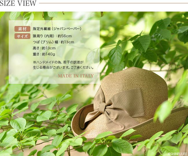 世界一の帽子の街からの贈り物/夏の日よけ帽子に上質なイタリア製を/折りたたみで収納に便利/ つば広/13cm/uvカット/ペーパーハット/ハット/女優帽/麦わら帽子/ブランド/レディース/ VECCHI[ヴェッキ] カプリーヌハット/ガルボハット/リボン/世界一の帽子の街からの贈り物/夏の日よけ帽子に上質なイタリア製を/折りたたみで収納に便利/つば広/13cm/uvカット/ペーパーハット/ハット/女優帽/麦わら帽子/レディース