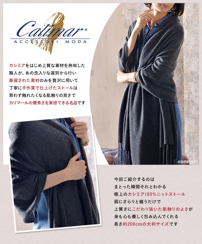 100年の歴史を紡ぐイタリアニットの贅沢ストール カリマール(Calimar)カシミア 大判ストール カシミヤ 厚手 マフラー ニットストール レディース メンズ/ イタリアメイドのカシミア100% 大判 ニット ストール 【Calimar】カリマール