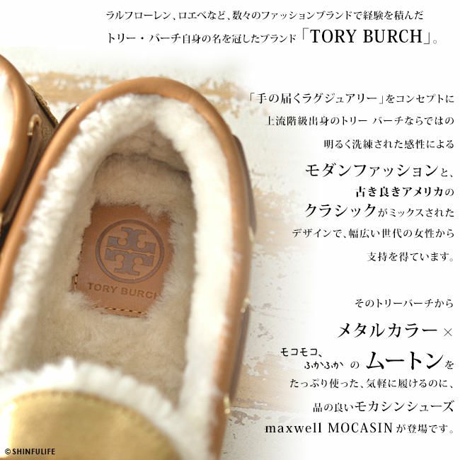 ※特価の為返品・キャンセル・交換無料サービス対応不可。※交換対応は、通常販売時のお買い物通りのご案内です。※サイズ交換希望で、ご交換希望サイズが欠品の場合は返品不可 オーストラリア産リアルムートンにレザーを合わせた モカシン Tory Burch トリーバーチ