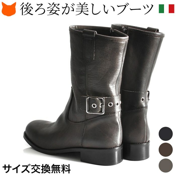柔らかいレザーだから痛くない。ベルトデザインがかっこいいイタリアのレザーブーツ 23-25.5cm|ヒール3.5cm エンジニアブーツ 本革レザー ショートブーツ ゴツめ イタリア製 ブランド コルソローマ9 CORSO ROMA 9 黒 ブラック ブラウン グレー