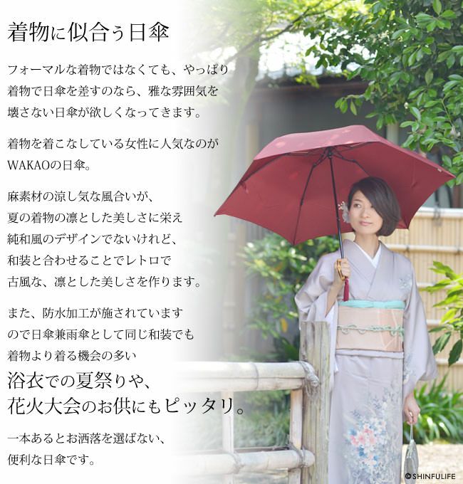 人気のワカオの折りたたみ日傘 数少ない日本製の日傘を求める女性におすすめしたいおしゃれな日傘 大切な女性へのプレゼントやギフトにもおすすめ ワカオ 日傘 折りたたみ 布生地 日本製 WAKAO コットン 綿100 天然木 バンブーハンドル 寒竹 8本骨