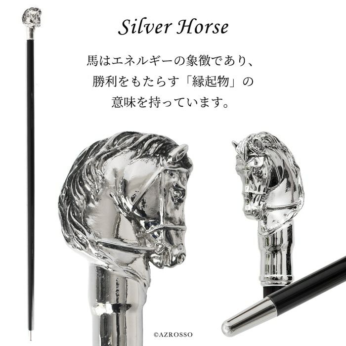 イタリアを代表するローマの老舗ファクトリーからハイクラスなステッキをお届け シルバーホース ステッキ 馬 杖 おしゃれでかっこいいイタリアの杖 プレゼントやギフトにおすすめ pasotti