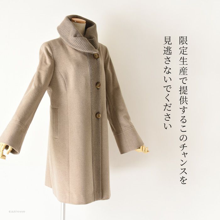 贅沢な艶と軽さと暖かさ。オールジャパンメイドのハイクオリティなミドルコート カシミヤコート セーブル ベージュ 春コート 秋 冬 レディース 日本製 ミドルコート ステンカラーコート