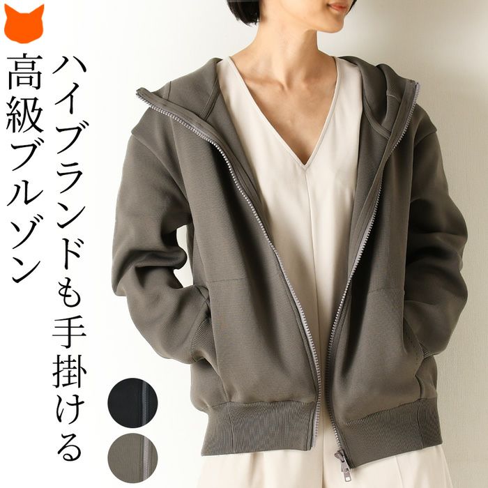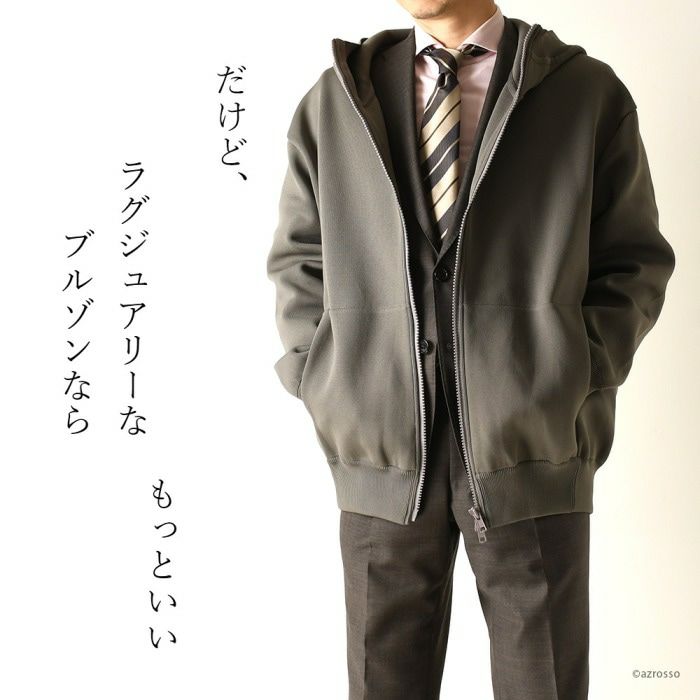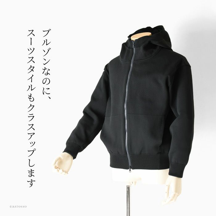 スーツにも合う高級ブルゾン。ハイブランドも手掛ける日本メーカーによるストレッチ性、保温性高いブルゾンジャケット。フード付き。両開きファスナー ミラノリブ ジップアップ パーカー フード ブルゾン ジャケット マウンテンパーカー メンズ ビッグシルエット グレー ネイビー ブラック オーバーサイズ ストレッチ ジャケット 日本製 ブランド ノアフ noaf