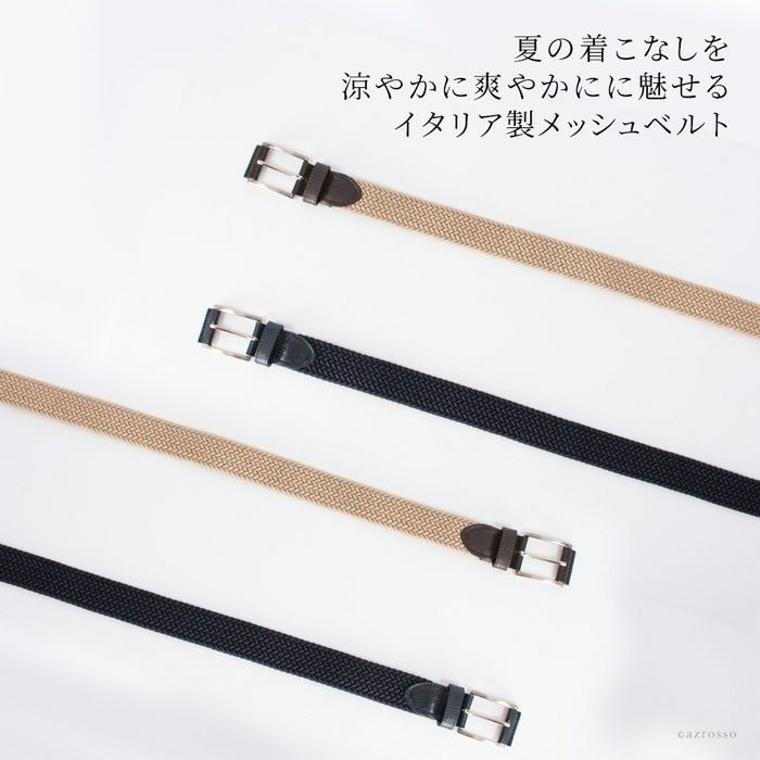 着こなしをクラスアップさせるイタリア生まれのメンズベルト。カジュアルな装いにピッタリのメッシュベルトは、春夏の装いをより涼し気に爽やかな印象に。サイズを自由に調節できます。 自由に調節できる メッシュ ベルト メンズ イタリア製 ネイビー ブルー ベージュ 青