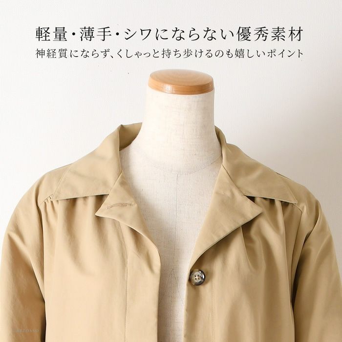 イギリス王室御用達ブランドのレインコートとしても着れるはっ水トレンチコート。ギャザードレープが後姿を華やかに演出。春秋の通勤コーデ、普段使いやお出かけ(旅行)に ショートコート 撥水 コート 晴雨兼用 ショート丈 ブラック ベージュ アウター 日本製 ブランド フォックスアンブレラ Fox umbrellas