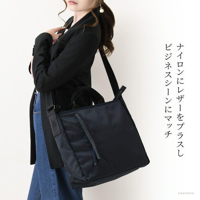 スマートでスタイリッシュなスクエア型PCバッグ。ショルダーバッグとしても使える2way。マチ付き、ナイロン製、A4サイズも楽々収納、とビジネスに最適なパソコンバッグ PCバッグ 2way ショルダーバッグ A4収納 ナイロン バッグ 日本製 パソコンケース 15インチ 14インチ 13インチ 大容量 レディース