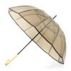 ビニール×バンブーの斬新な組み合わせと、目を惹くドーム型をした高級感漂うワンランク上のクリアアンブレラは、視界がクリアで、ファッション性だけでなく安全性を兼ね備えているのもポイント。 おしゃれなビニール傘 クリアアンブレラ 親骨55cm 雨傘 長傘 透明 ブラウン ホワイト グレー