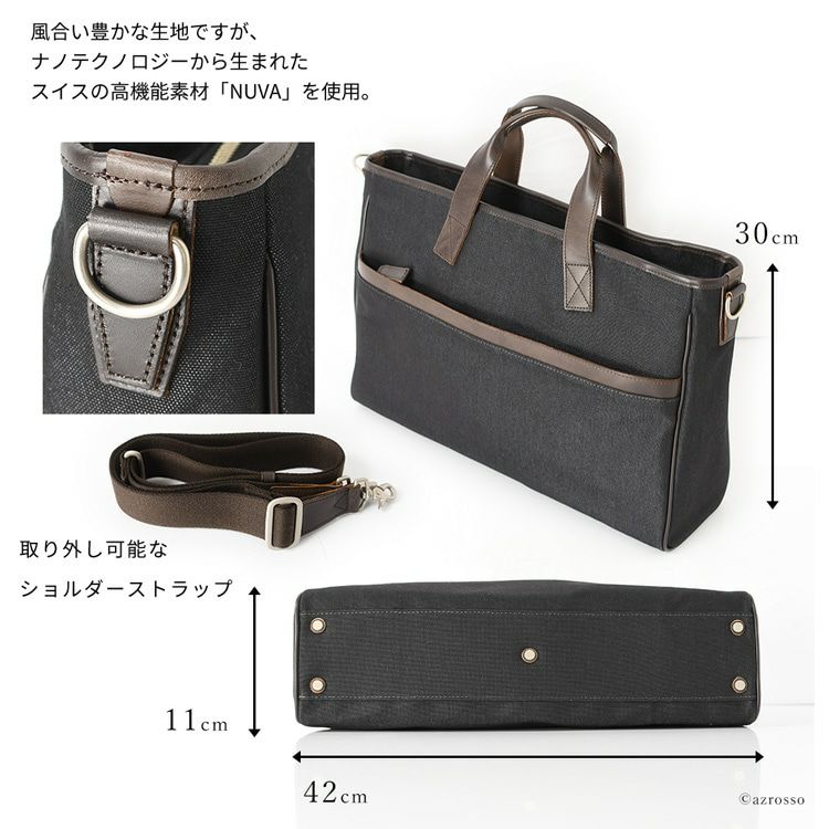 軽やかな帆布にしなやかな本革を合わせた日本製Comodo Plust(コモドプラスト)のメンズトートバッグ。ショルダーバッグとして使える2way。ミニサイズながらA4収納可能で使いやすい 3層構造 トートバッグ メンズ 帆布 本革 2way ショルダー付き 大容量 A4収納 斜め掛け ミニバッグ 日本製 アリシア