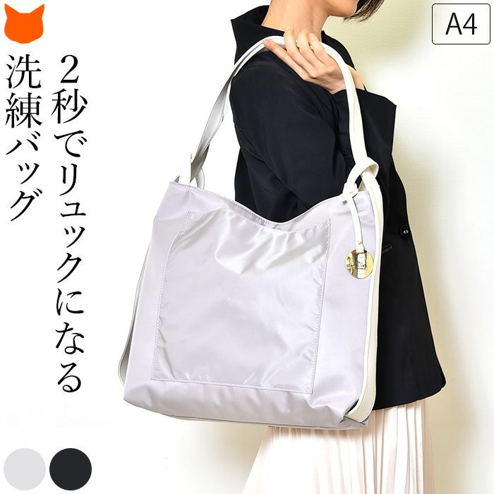 2秒でリュックになる2wayトート BEVINI(ベビーニ ベヴィニ) 大容量なのに軽いナイロンバッグは普段使いは勿論、自転車通勤にも| 2way トートバッグ A4 リュック プラダと同じリモンタナイロン 軽くて丈夫 大容量 ブラック 黒 ライトグレー イタリア製