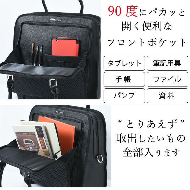 Cappuccetto Violetto カプチェットヴィオレット|ノートパソコンが入る ガバッと開くスクエア型 リュックサック ブランド 営業 出張に便利 A4とノートパソコンが入る 本革レザーリュック 軽量 PC 大容量 ブラック 黒 ネイビー 女性 ビジネス 通勤 仕事 自転車通勤に