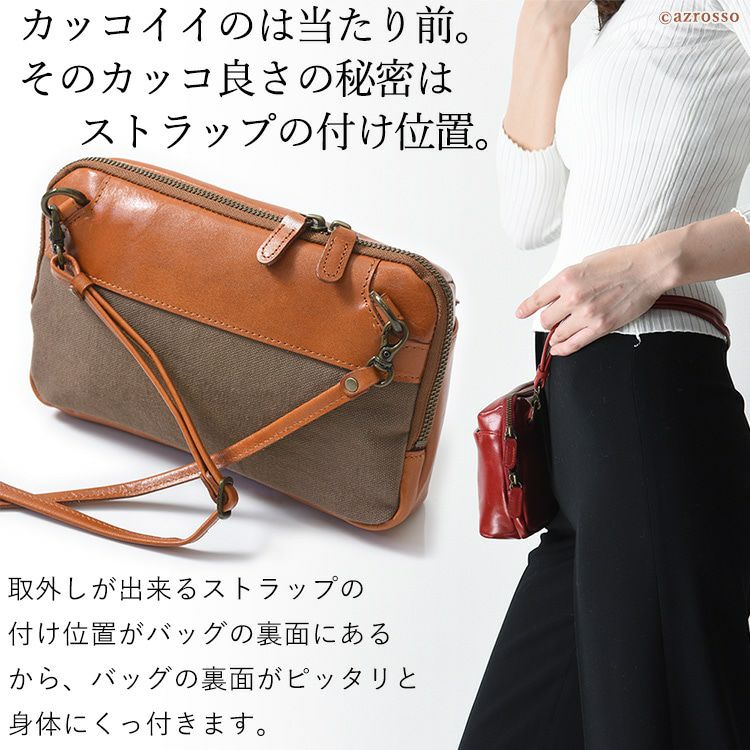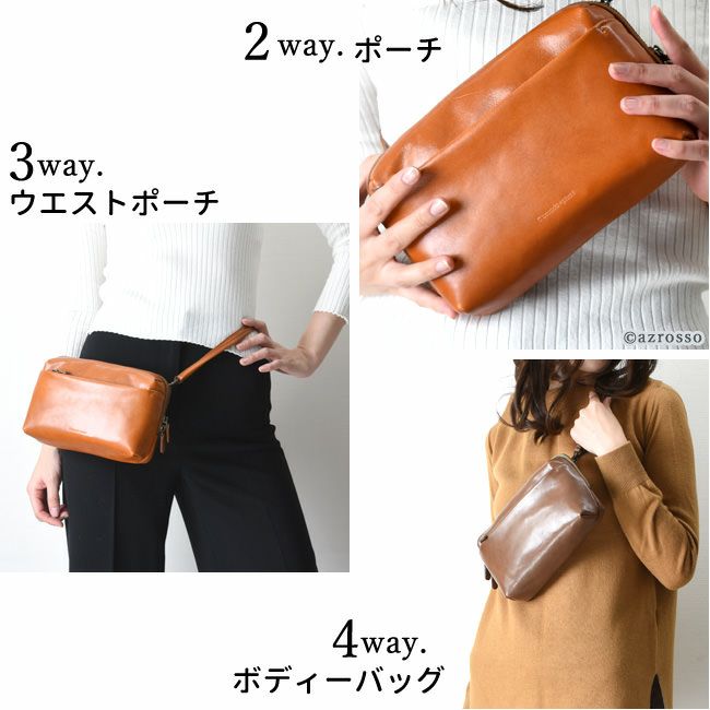 コンパクトサイズの上質レザーバッグ 4way レディース 通勤 お仕事 出張 旅行 カジュアルなお出かけ 普段使い 必要最小限の収納力 日本ブランド 本革 ブラック 黒 キャメル レッド 赤 グリーン ブラウン / 日本製 ポシェット ショルダーバッグ 軽量 500g以下バッグ 軽い 4Way ミニバッグ
