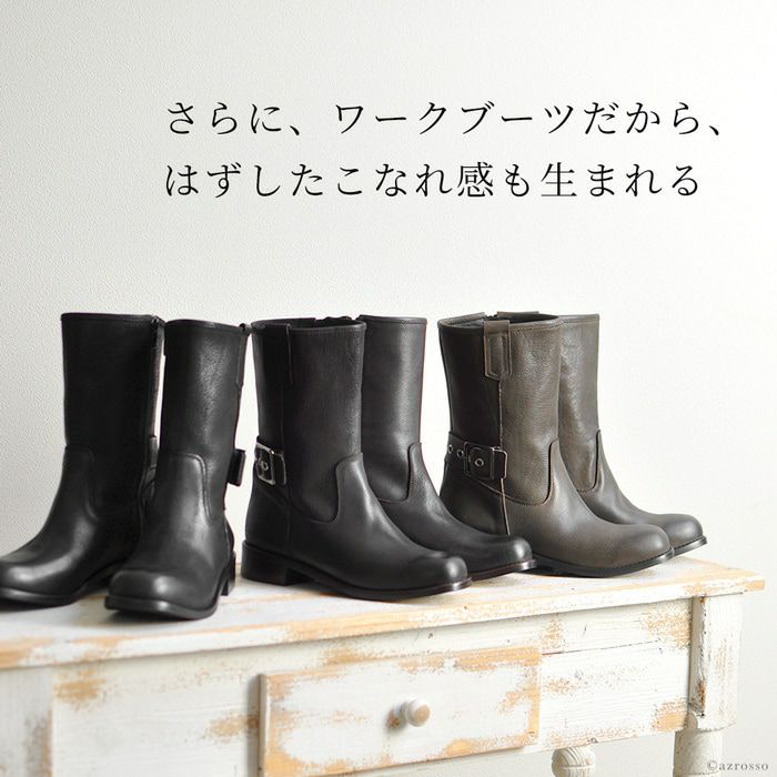 柔らかいレザーだから痛くない。ベルトデザインがかっこいいイタリアのレザーブーツ 23-25.5cm|ヒール3.5cm エンジニアブーツ 本革レザー ショートブーツ ゴツめ イタリア製 ブランド コルソローマ9 CORSO ROMA 9 黒 ブラック ブラウン グレー