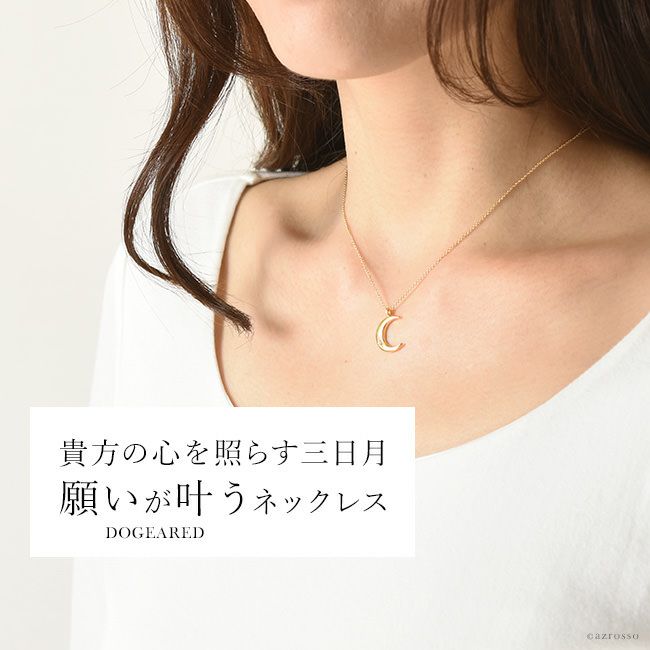 人気ジュエリーブランドDogeared(ドギャード)の幸運を運ぶムーンモチーフ(三日月型)ネックレス。14k(k14 14金)ゴールドコーティングのシンプルで華奢なペンダントは女性の誕生日プレゼントや記念日ギフトにおすすめ/ 三日月 ムーン 月モチーフ ゴールドネックレス 願いが叶う ドギャード dogeared ブランド クリスタル【通常ネコポス配送】